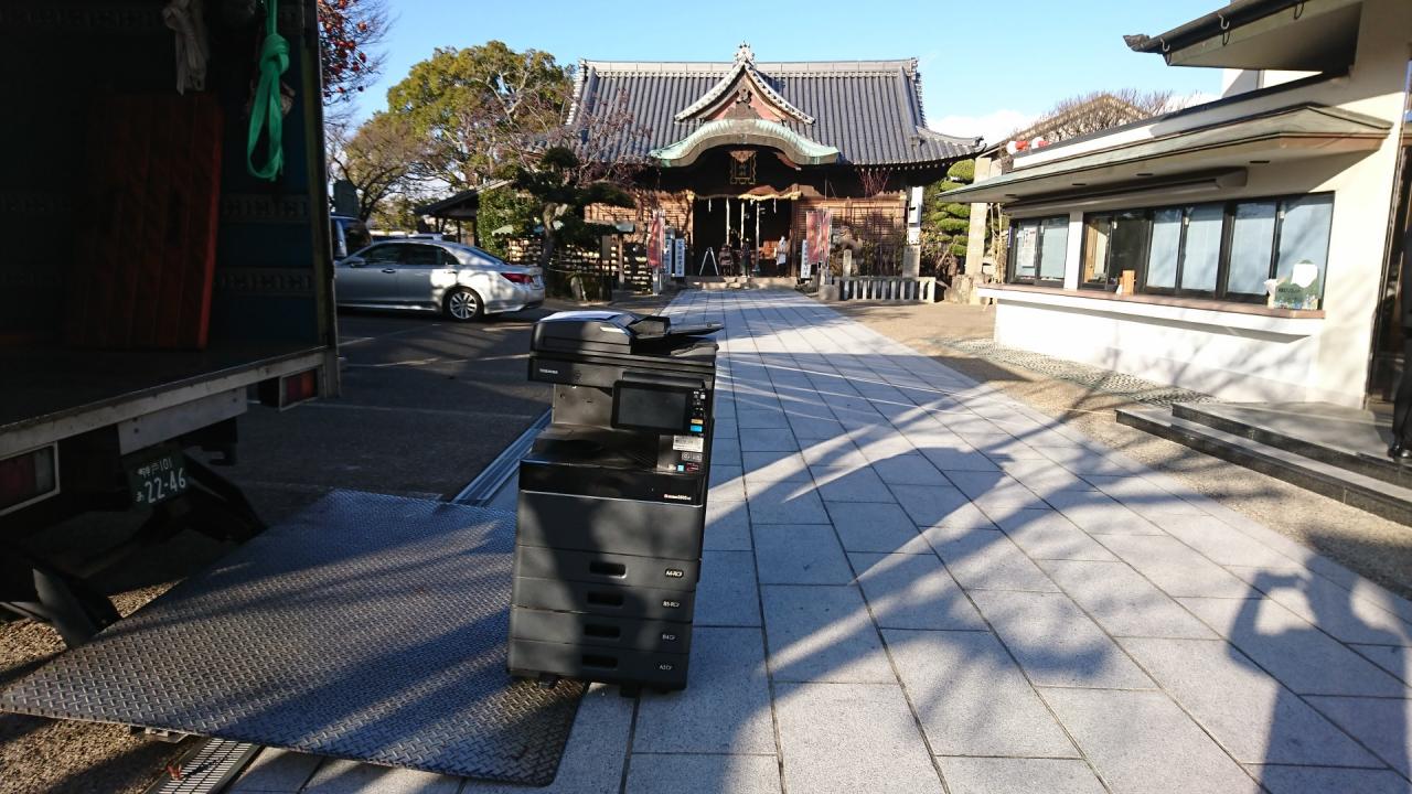 大森ビジネスさんのコピー機入れ替えはトラックを止めれる場所がなく、かなり台車で押していきました。
