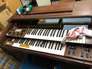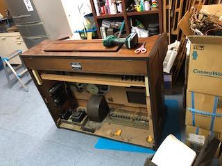 90キロくらいのもので階段を降りて積み込み、事務所へ持って帰りました!帰ってからエレクトーンを分解して軽くし、写真の通りです!
