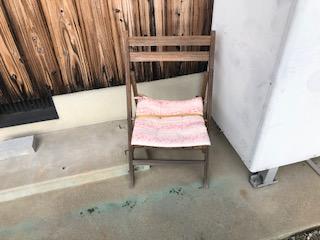 写真の椅子なんですが、納品先で業者さんが渋滞で遅れていて待ってたら、お爺ちゃんが日向ぼっこしたら気持ちええよって言うて出してくれました(笑)