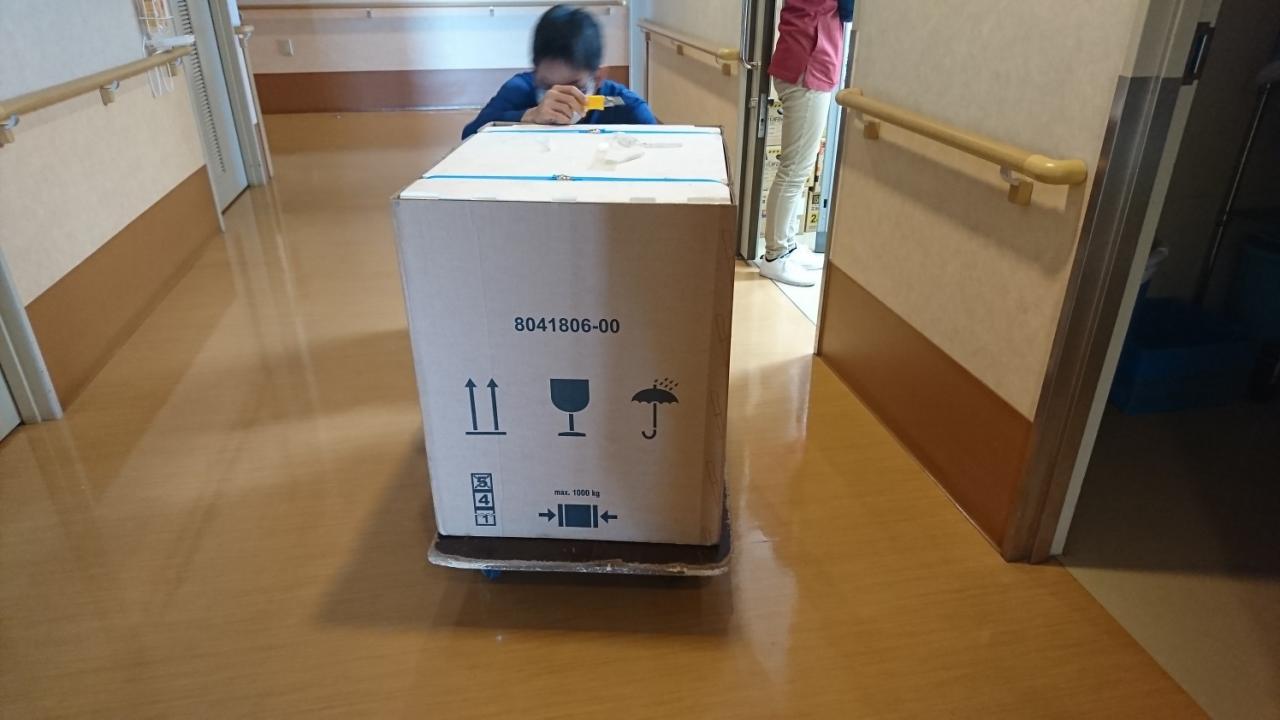 病院の冷蔵庫ですが、1人でも運べるような小さい冷蔵庫でした。
